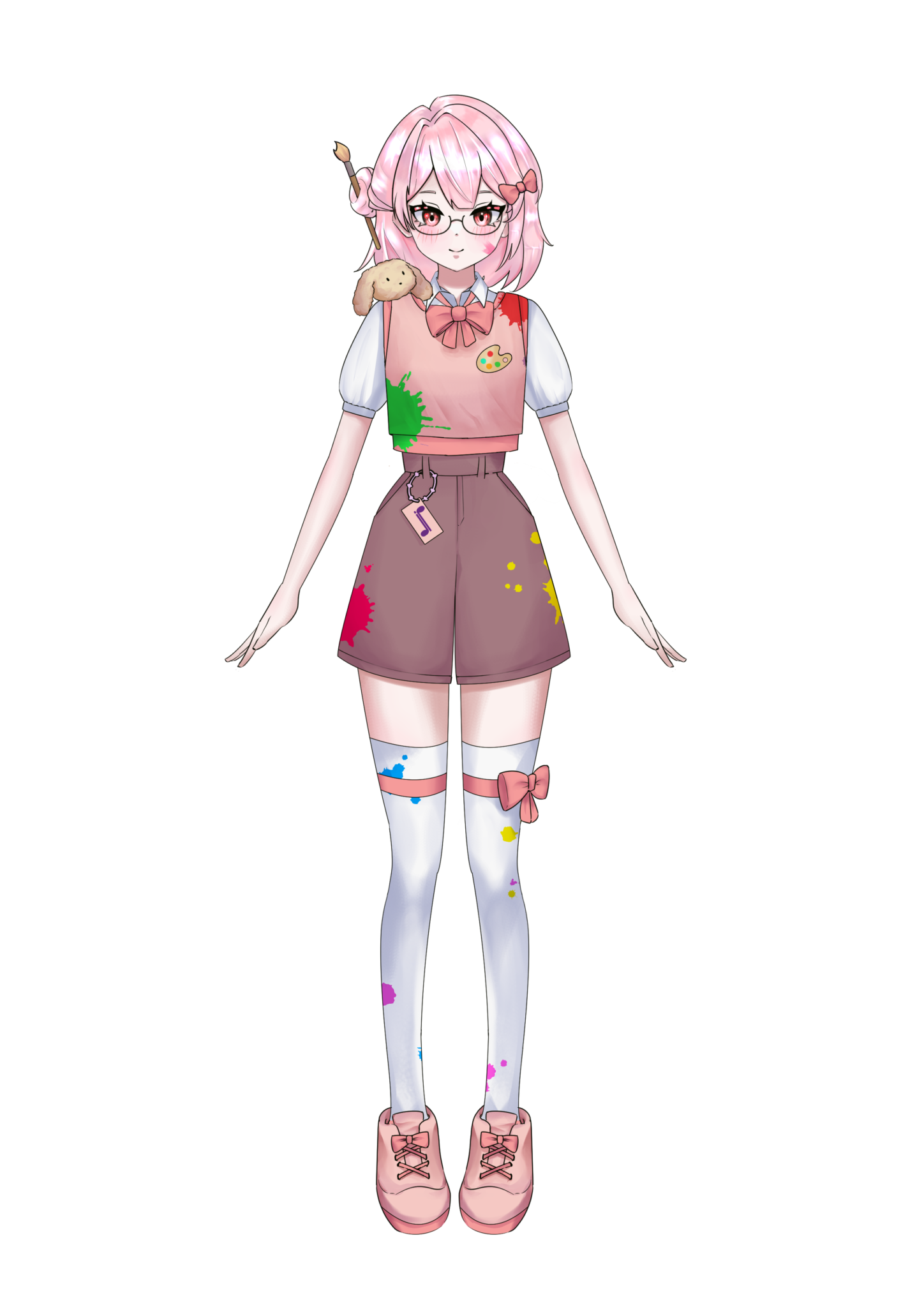 Cherry Artellia is a cheerful VTuber who brings color and creativity to every stream! With her pastel pink hair, cute glasses, and paint-splattered outfit, she’s always ready to chat endlessly while sketching, doodling, or sharing her artistic adventures. Her playful energy and talkative charm make every moment feel like hanging out with a close friend in a cozy art studio.